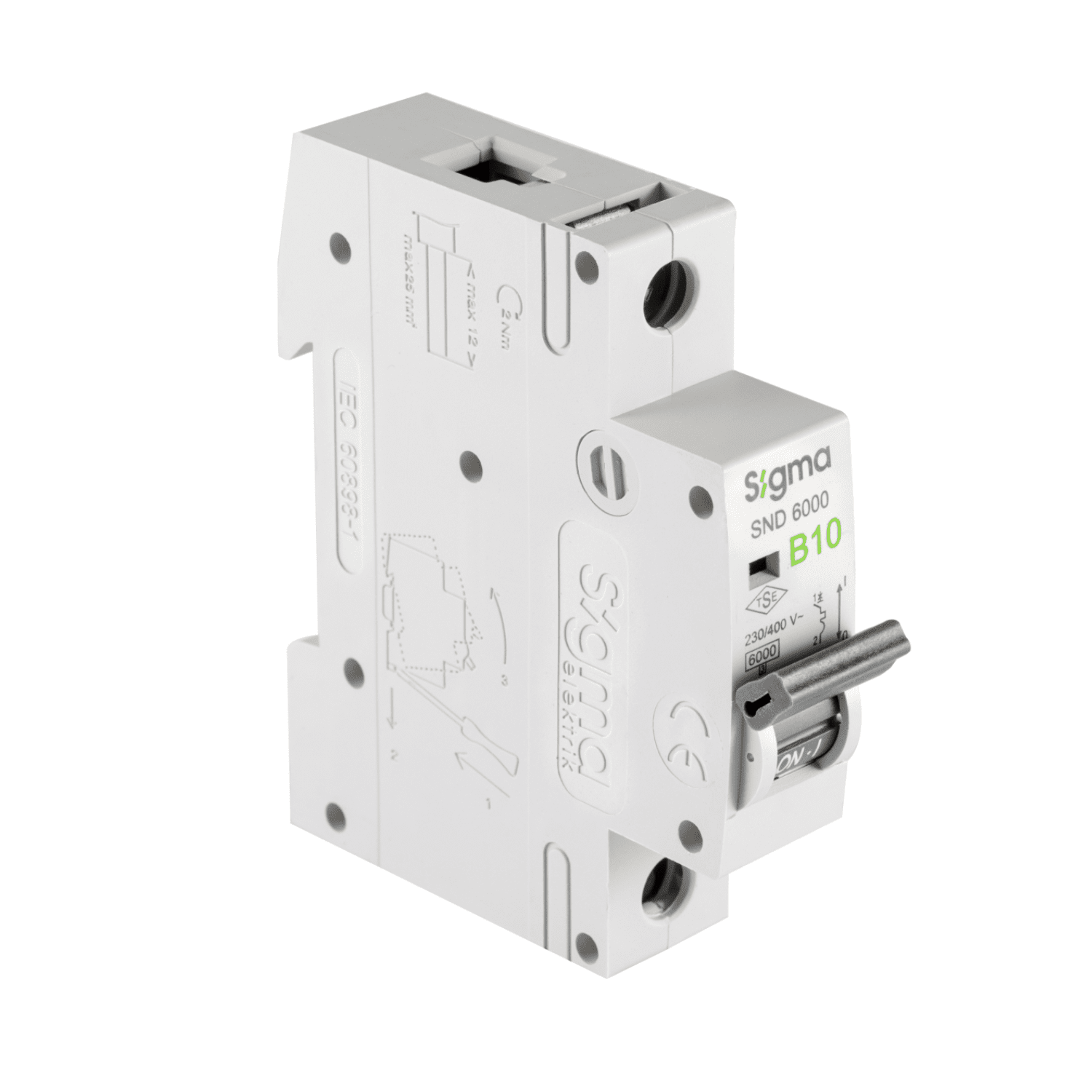 کلید مینیاتوری تک پل ۱۰ آمپر سیگما الکتریک سری SND 6000 منحنی C (موتوری)